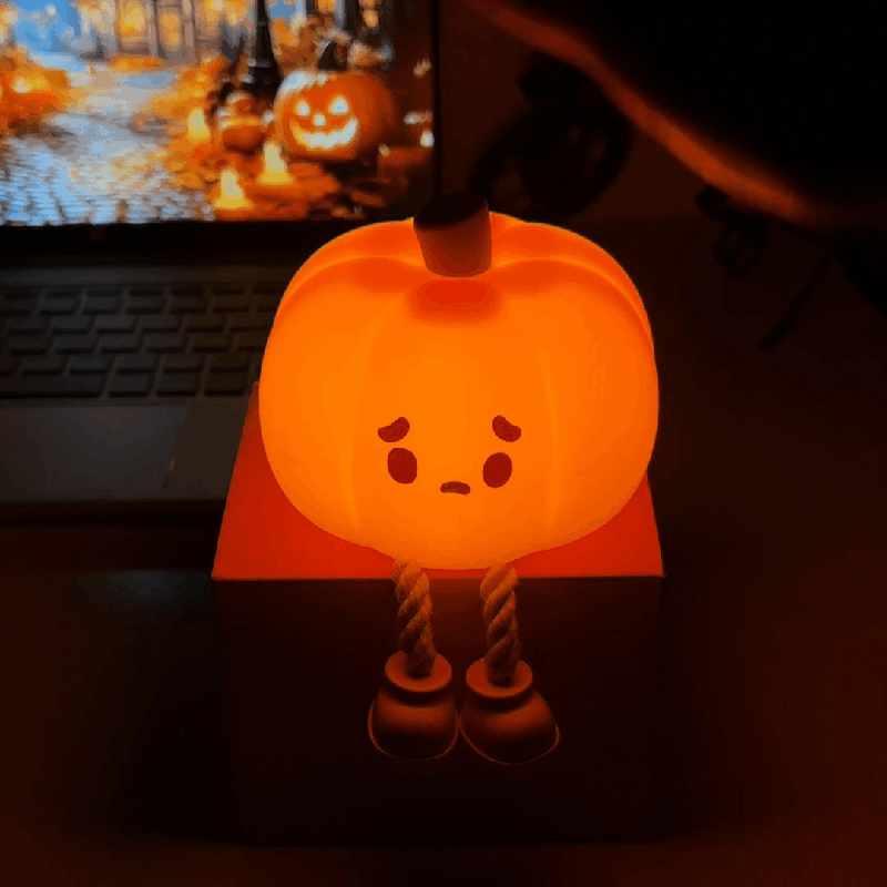 Mr Pumpkin may look a little lonely, but with each gentle touch he lights up brighter — a soft, glowing buddy bringing comfort and warmth to your space.